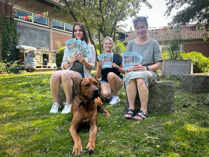 Das Orga-Team Frau Paar, Frau Hellmerichs und Frau Vorländer freuen sich über die ersten Exemplare. So kann das neue Schuljahr gut organisiert beginnen – mit viel Freude und ein bisschen Hundeglück.