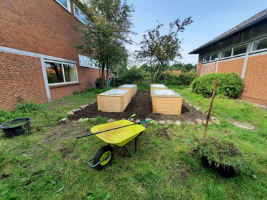Die Kinder der Schulgarten AG sind jeden Mittwoch fleißig am Arbeiten. Hier ist mit Unterstützung von Frau Gläser unser neuer Schulgarten entstanden.